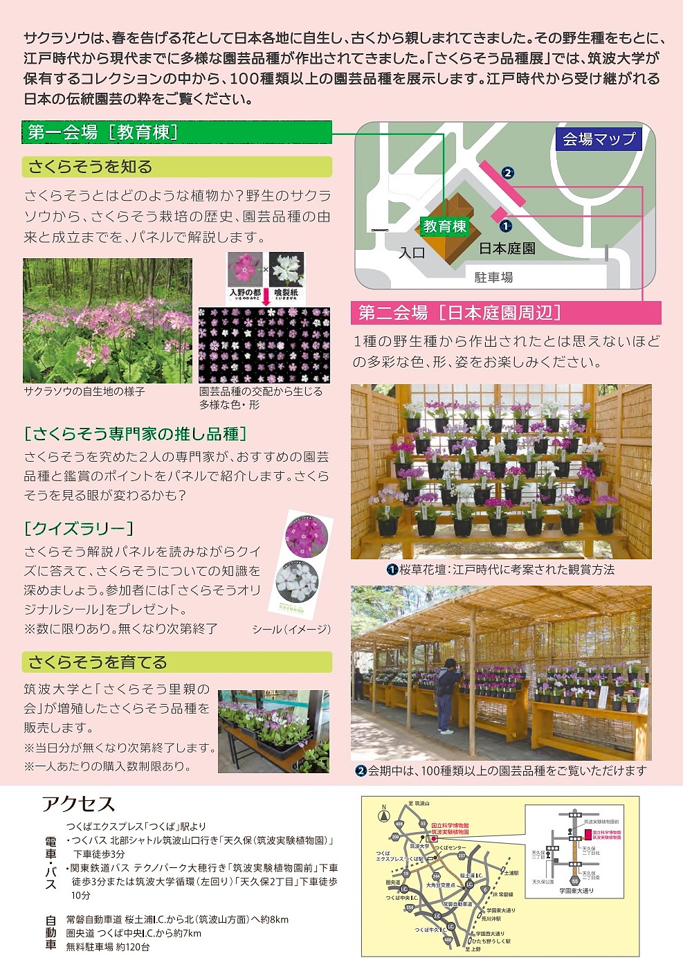 協 力 筑波大学さくらそう里親の会、NPOつくばアーバンガーデニング