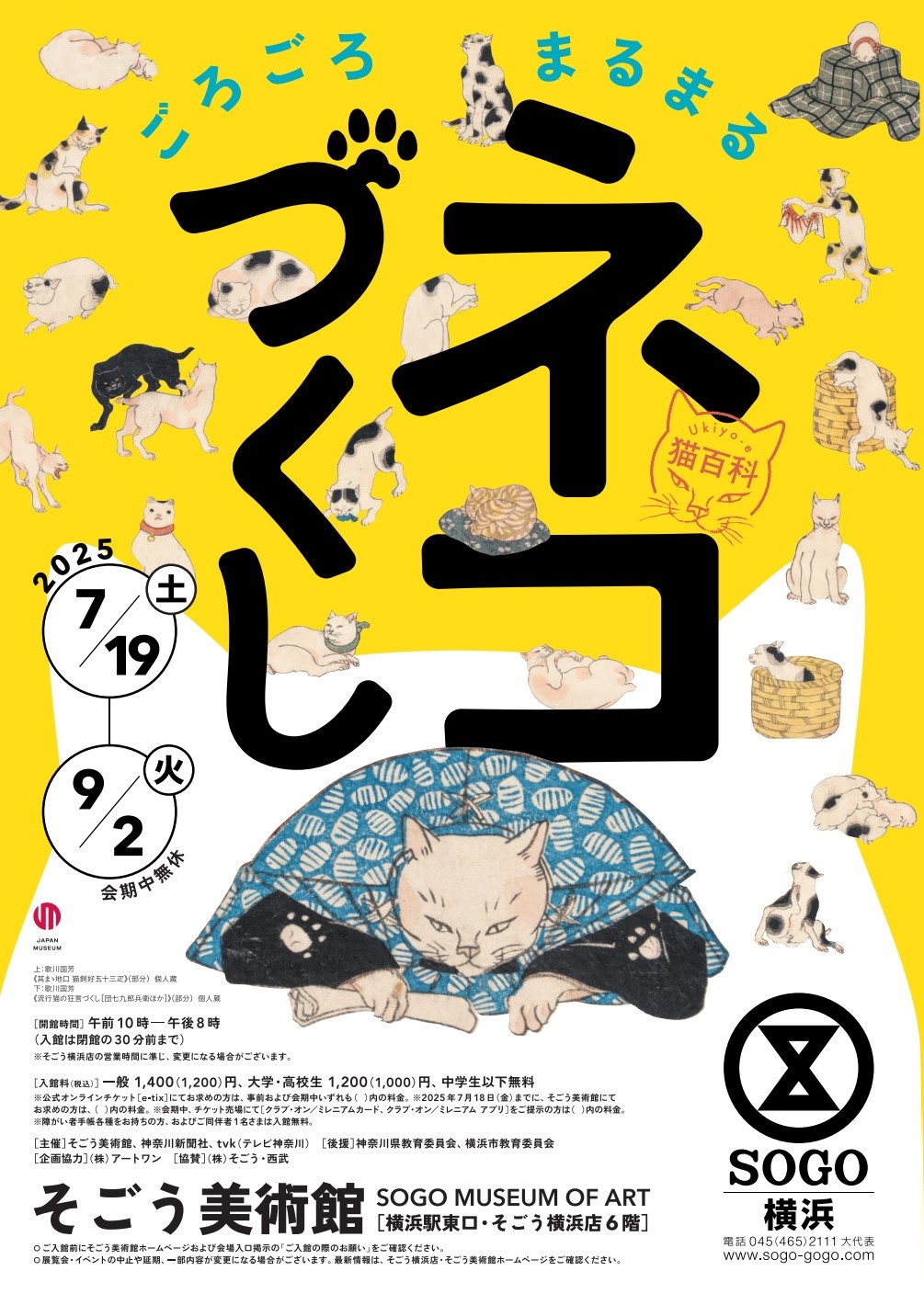 【展覧会】そごう美術館(そごう横浜店 6 階)|Ukiyo-e 猫百科 ごろごろまるまる ネコづくし|’25年7月19日-9月2日|終了
