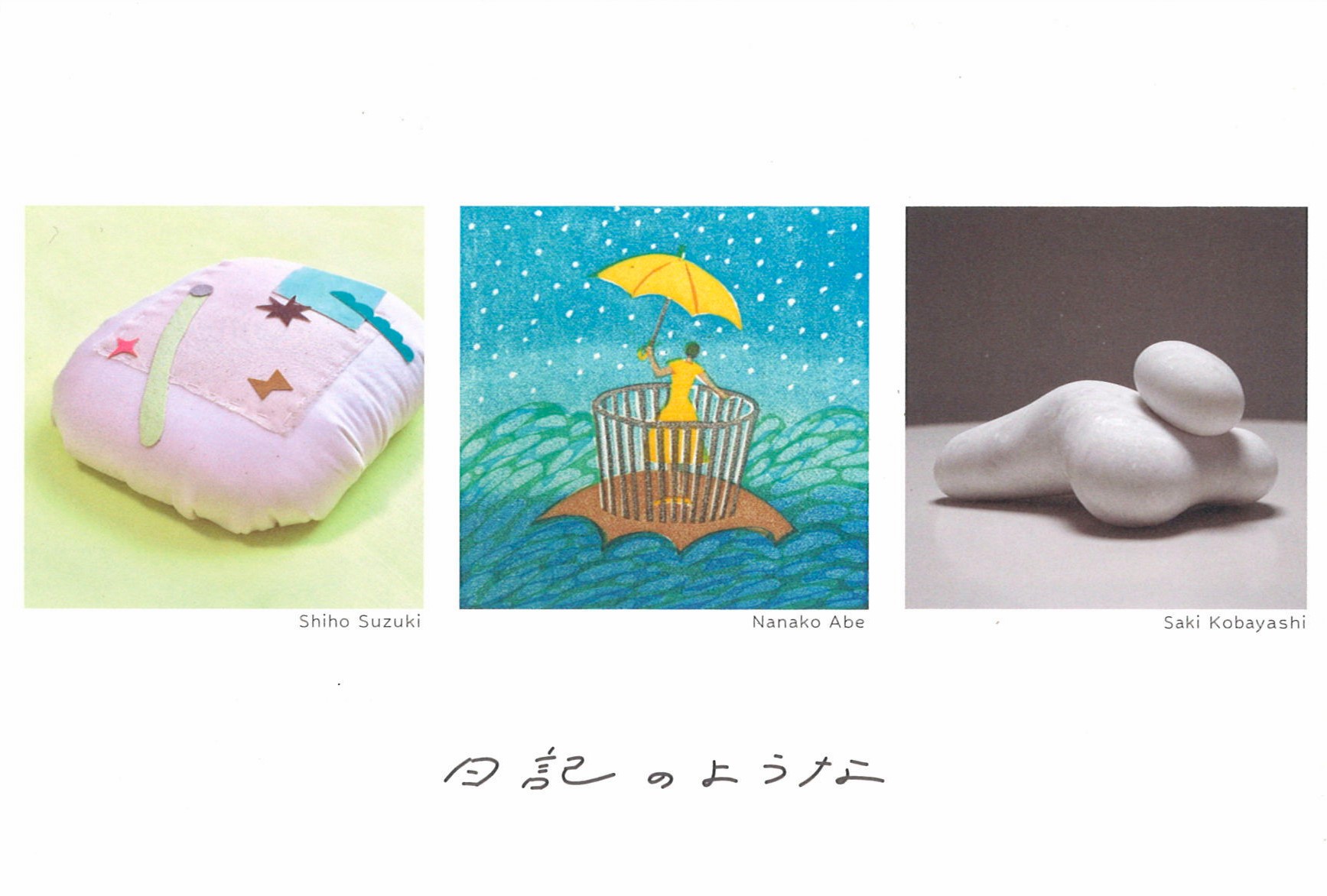 絵画 すずきしほ、版画 阿部七菜子、彫刻 小林紗己の展覧会です。
