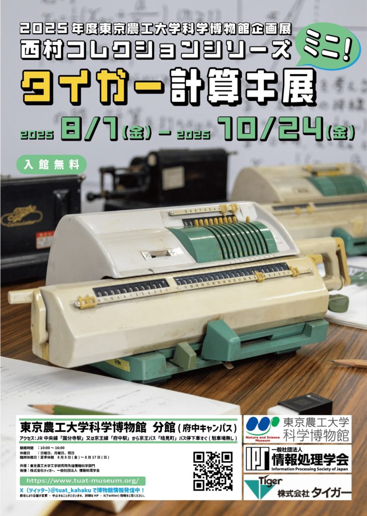 2023年11月11日から2024年6月1日に東京農工大学科学博物館で開催した企画展「タイガー計算キ展」を再構成し、科学博物館分館(府中キャンパス)で「タイガー計算キ展ミニ!」を開催します。