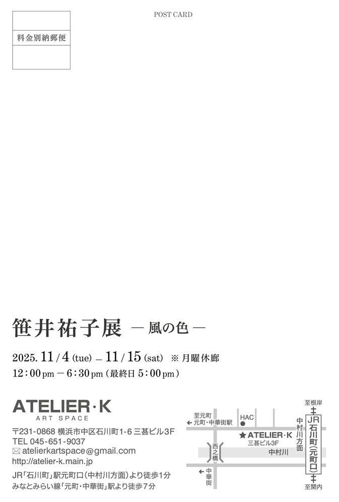 期 間:2025年11月4日[火]- 11月15日[土] * 月曜休廊