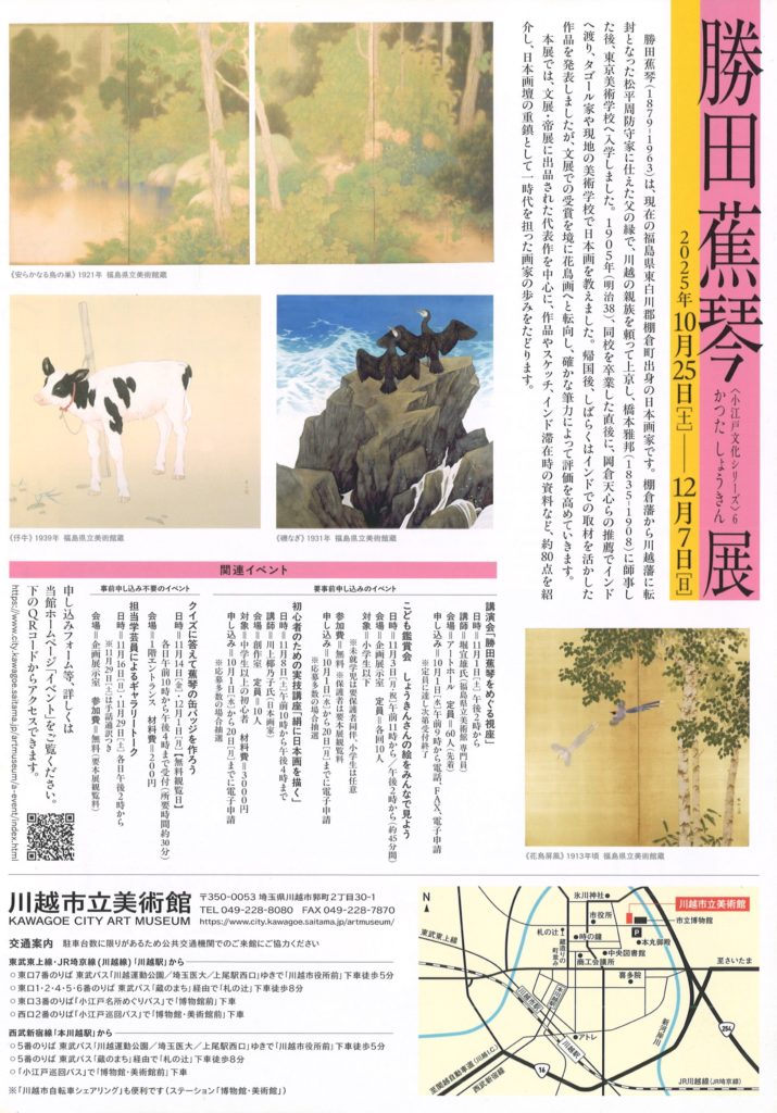 【展覧会】川越市立美術館|特別展 〈小江戸文化シリーズ〉6 勝田蕉琴展|’25年10月25日-12月7日|終了