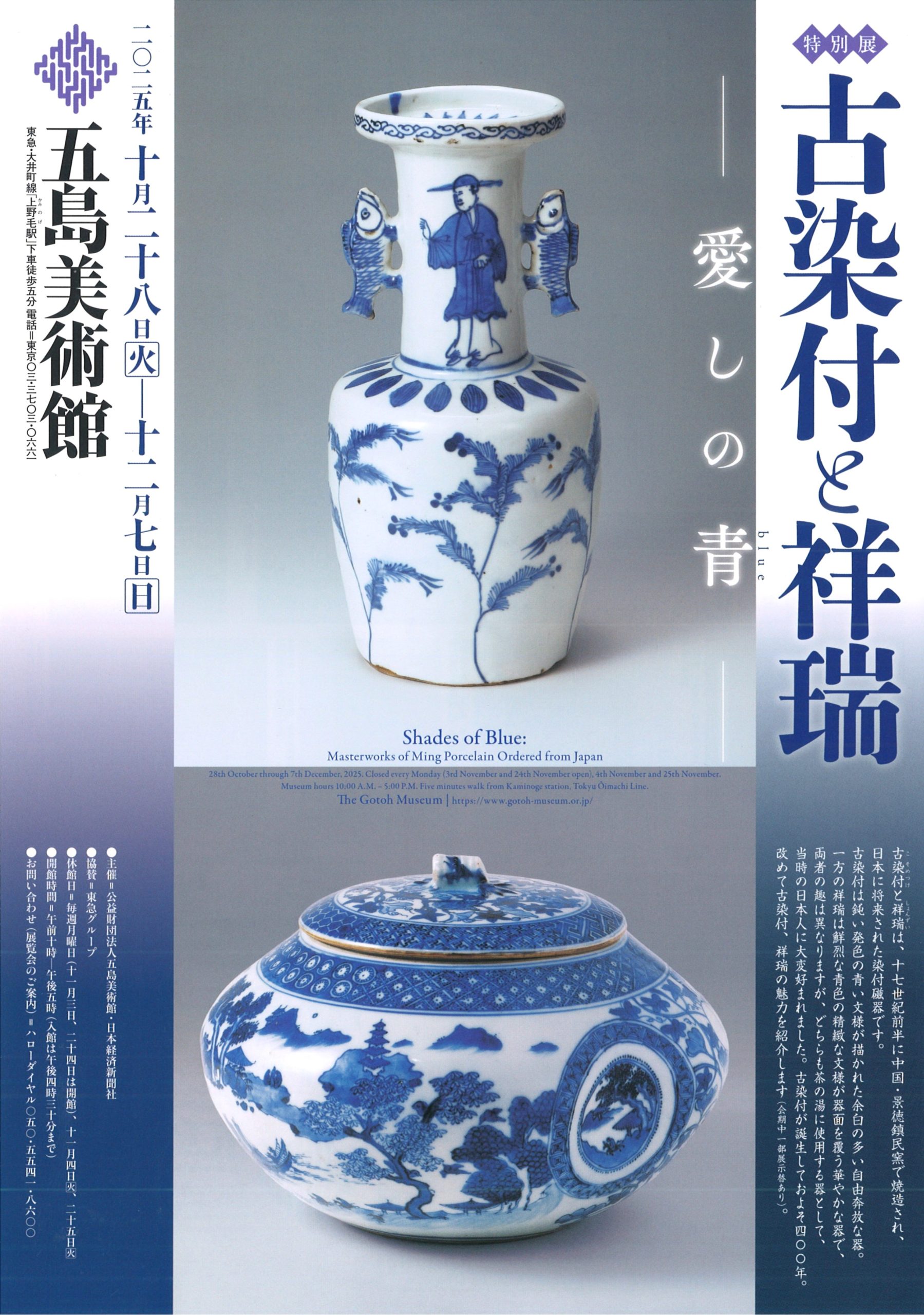 【展覧会】五島美術館|特別展 古染付と祥瑞 ―愛しの青―|’25年10月28日-12月7日|終了