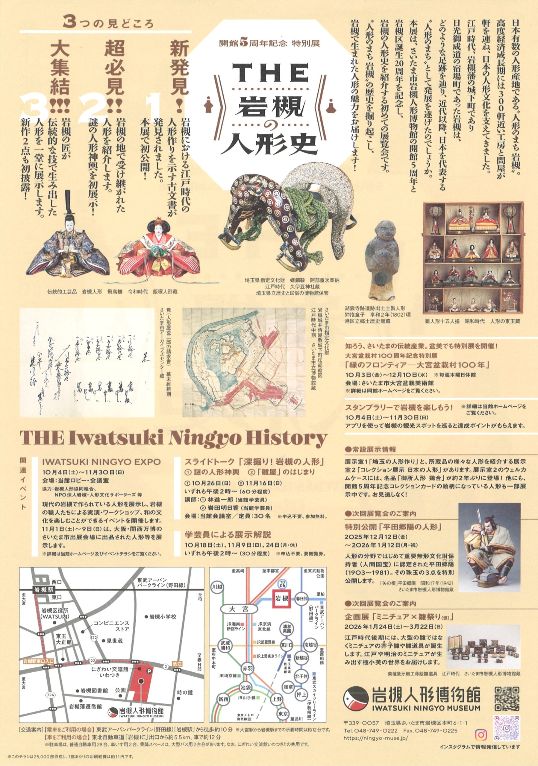 本展は、さいたま市岩槻人形博物館の開館5周年と岩槻区誕生20周年を記念し、岩槻の人形史を紹介する初めての展覧会です。“人形のまち岩槻” の歴史を掘り起こし、岩槻で生まれた人形の魅力をお届けします!