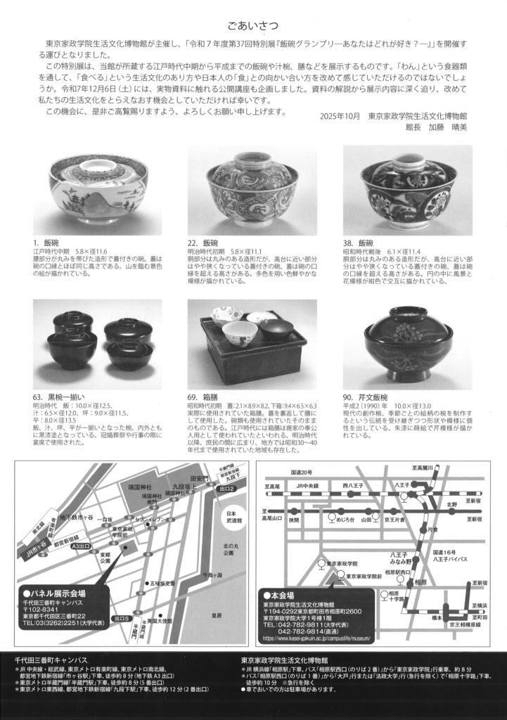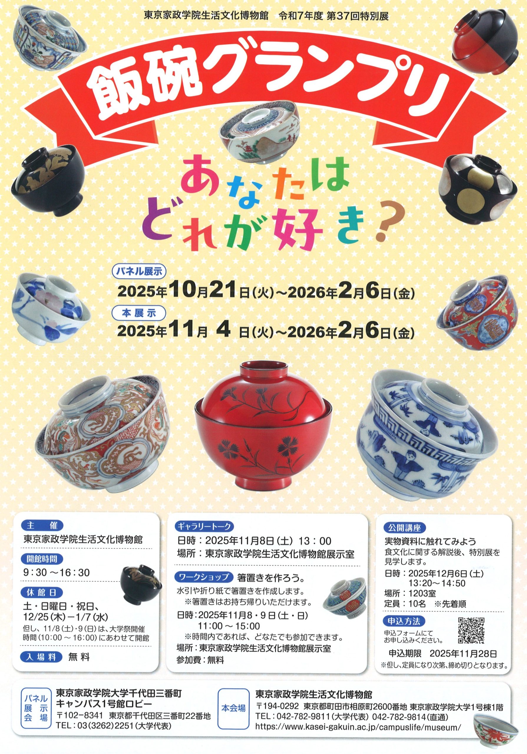 【展覧会】東京家政大学生活文化博物館|令和7年度第37回特別展|飯碗グランプリ―あなたはどれが好き?|’25年11月4日-’26年2月6日|開展貳个月