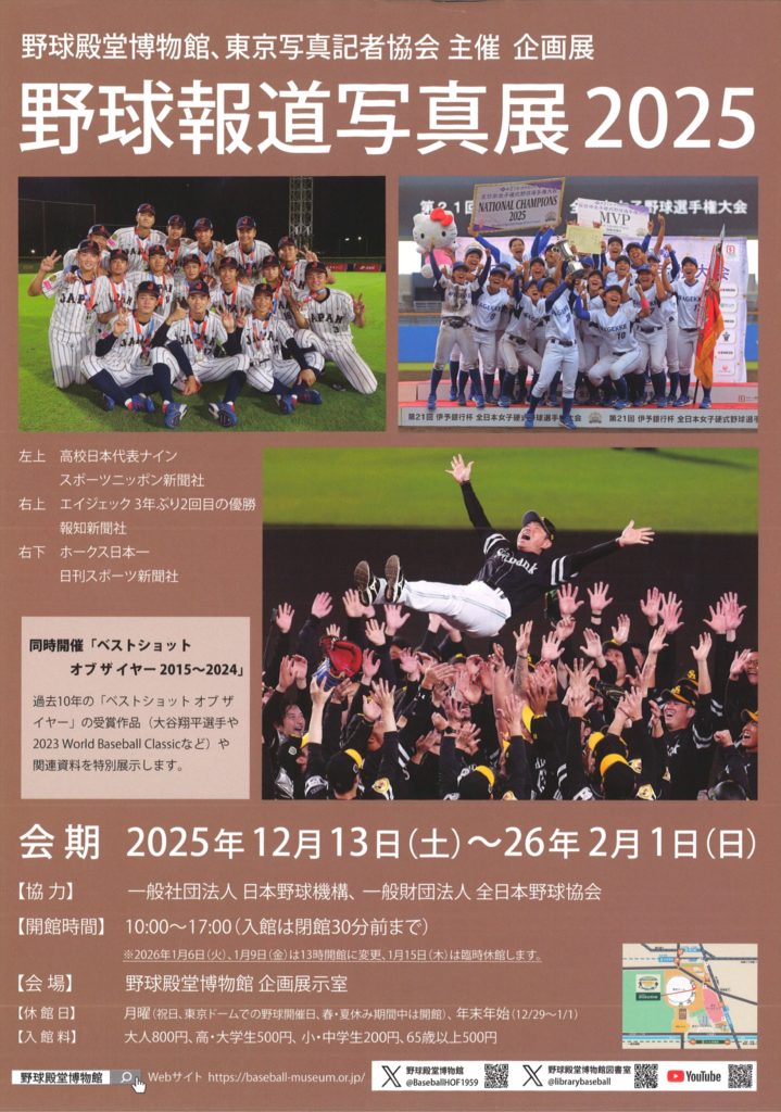 主 催 公益財団法人 野球殿堂博物館、東京写真記者協会