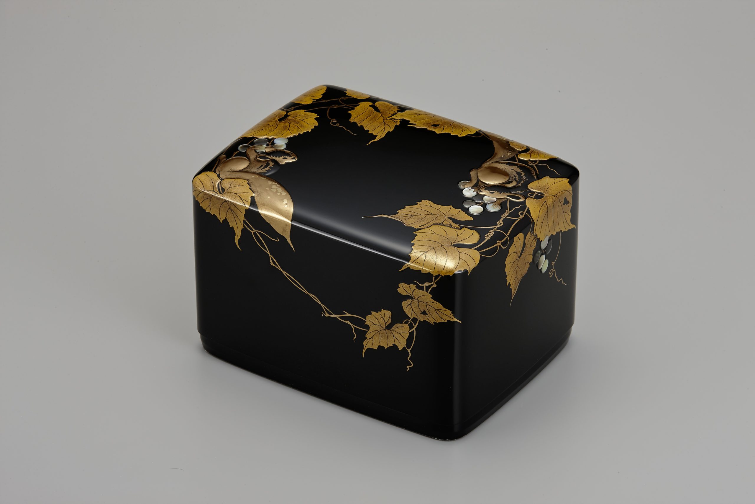 蒔絵 中野孝一《栗鼠に葡萄文蒔絵箱》