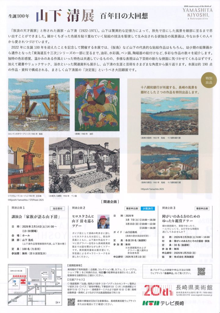 2022年に生誕100年を迎えた放浪の天才画家・山下清 (1922-1971)の大回顧展。素朴で懐かしい日本の原風景を描いた山下の作品は、長い年月を経てもなお観る者の心をとらえて離しません。本展は《桜島》など貼絵の代表的な作品をはじめ、子供時代の鉛筆画や後年の油彩、ペン画、陶磁器、遺品などが一堂にそろいます。世代を超えて愛される山下清の、まさに決定版ともいえる展覧会です。