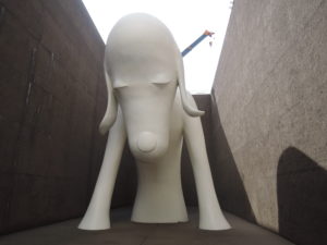 金沢美術工芸大学で彫刻を学んだ奥村浩之は、1989年よりメキシコで活動し、現在はメキシコ・ハラパと金沢を行き来しながら活動しています。ハラパにはメソアメリカの古代文明の石像が数多く遺っており、奥村の作品には風化した古代遺跡から受けた影響も窺われます。古代社会において、石を彫り、象ることは共同体の表現でしたが、奥村はベラクルス州の公共彫刻や、奥能登芸術祭の屋外彫刻も手掛け、個と共同体と彫刻された立体との関係性についての課題を探求し続けています。
