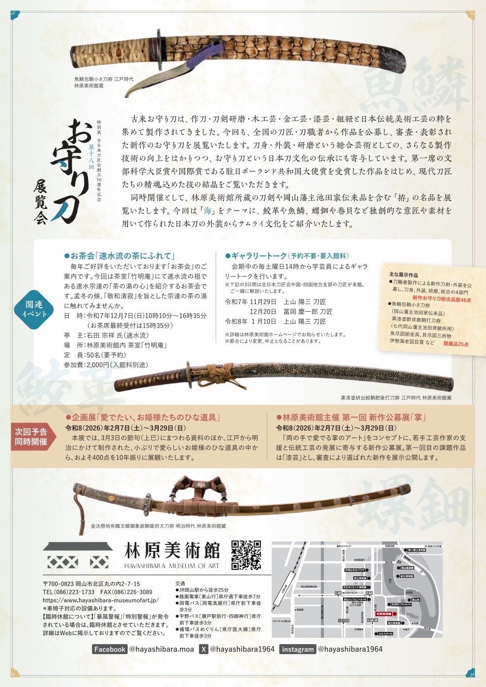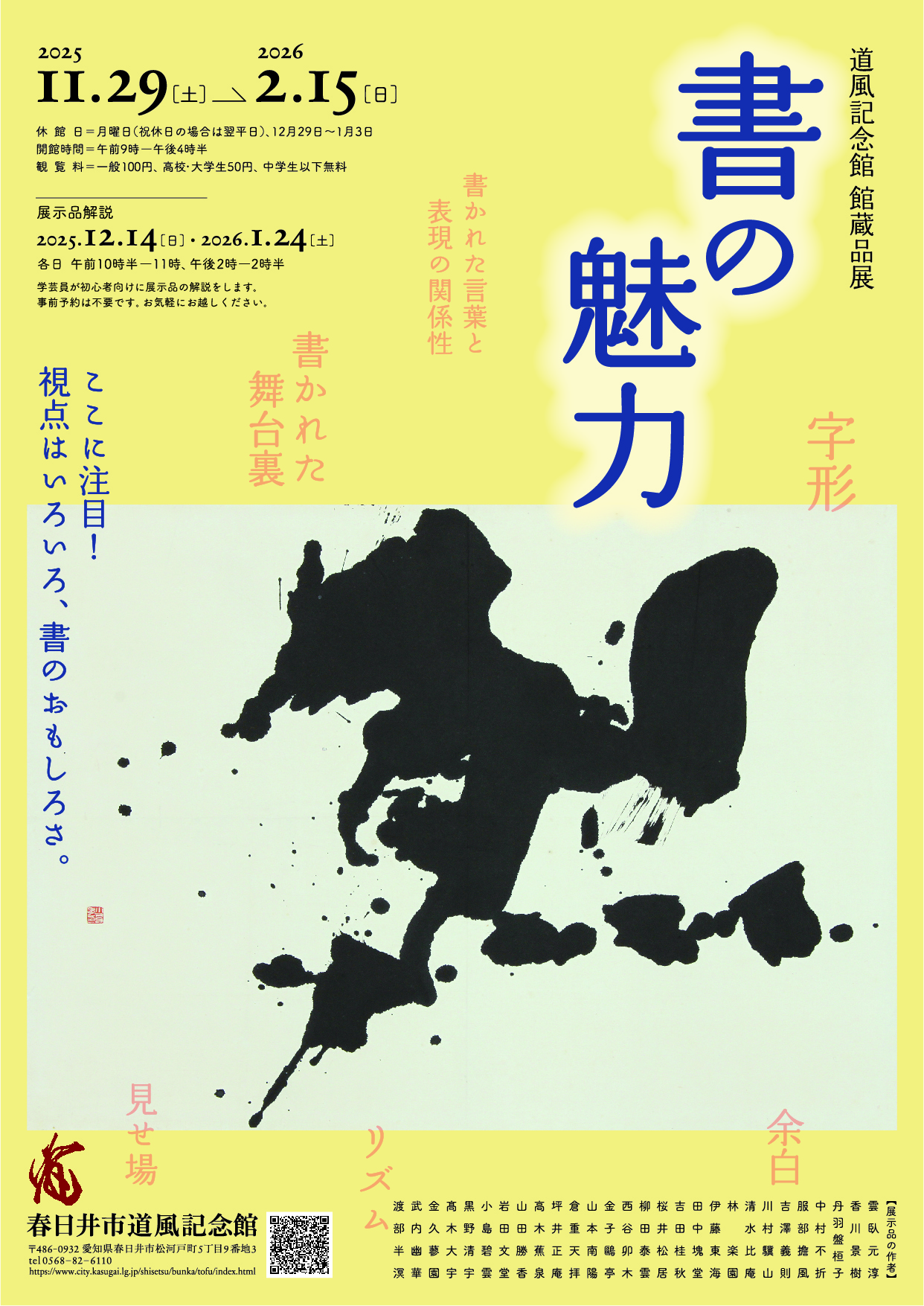 * 展示入替等のため臨時休館することがあります。 ▷ 開館カレンダー