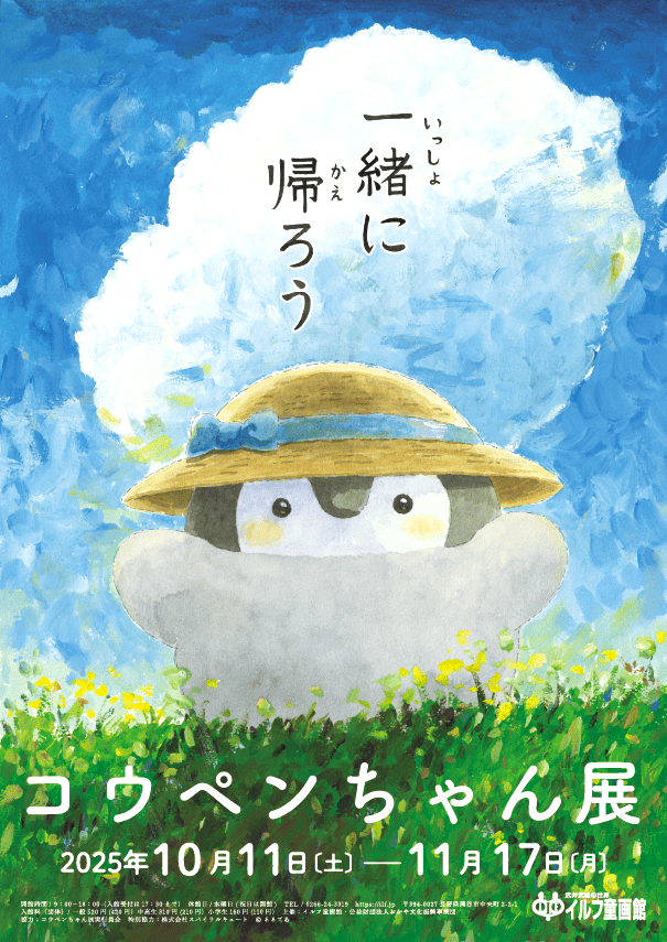 「出勤してえらい!」など、日常のささいなことを やさしく肯定してくれるコウテイペンギンの赤ちゃん「コウペンちゃん」。イラストレーター・るるてあ氏がSNSに投稿したイラストから生まれ、今では書籍やアニメ、グッズなどでも大人気のキャラクターです。本展では、るるてあ氏による150点以上の原画を展示。愛用の画材や制作の裏側も紹介し、巨大コウペンちゃんと撮影できるフォトスポットも登場。子どもから大人まで楽しめる、癒しに満ちた展覧会です。