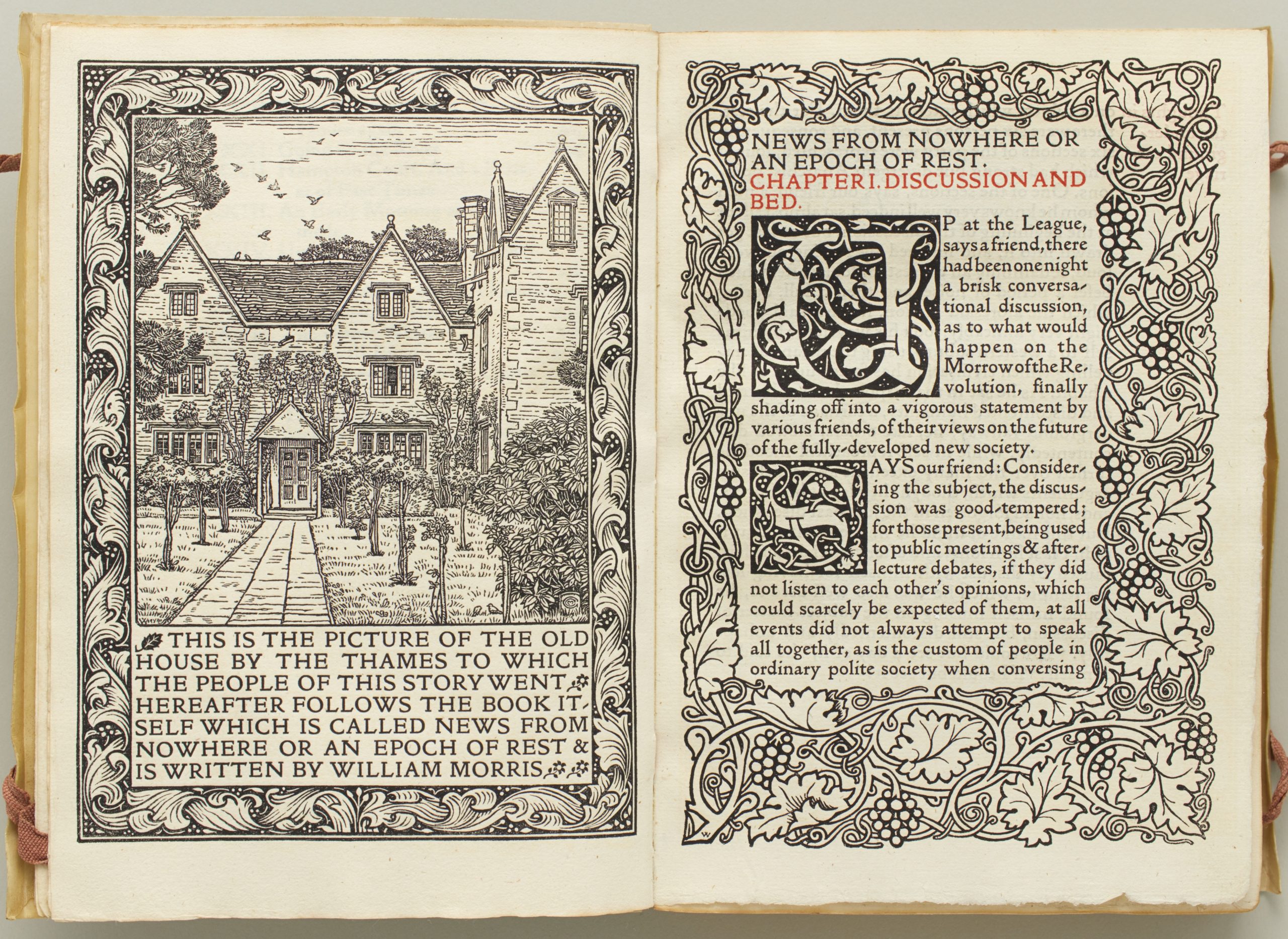 ユートピアは、イギリスの思想家トマス・モアの小説タイトルで、「どこにもない場所」を意味します。同じくイギリスの社会思想家、ウィリアム・モリスは自著『ユートピアだより』の中で、暮らしと芸術の総合を唱え、今ここにある課題をみつめ、どこにもない理想を夢みています。