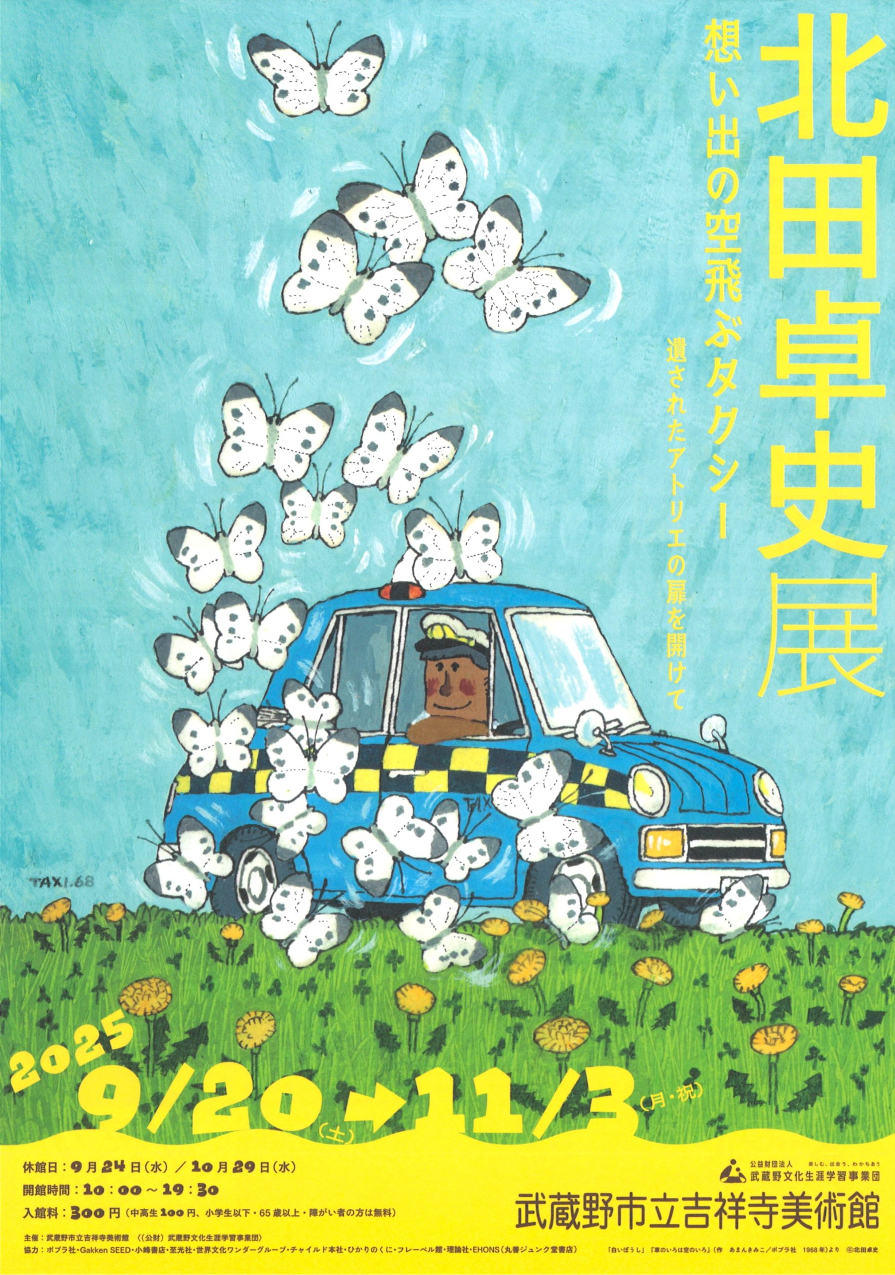 童画家・北田卓史(1921-1992)で想い出すのは、小学校の教科書にも掲載された短編童話・「白いぼうし」が収載された「車のいろは空のいろ」シリーズでしょう。空色の車を運転する “タクシー運転手の松井さん” と不思議な乗客たちの物語は、1968年刊行以降、世代を超えて広く親しまれています。戦後児童文学の第一人者である、あまんきみこ(1931- )の傑作であり、児童書の挿絵画家・北田卓史の名をも決定付けました。