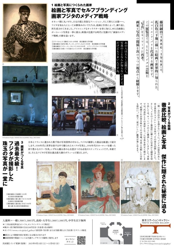 藤田嗣治(1886-1968)は、エコール・ド・パリの寵児として世界的に活躍した画家です。そんな藤田が、数多くの写真を残したことはほとんど知られていません。本展では、「写真」を軸に藤田の絵画制作を再考し、絵画と写真が交差する創造の軌跡を追います。
