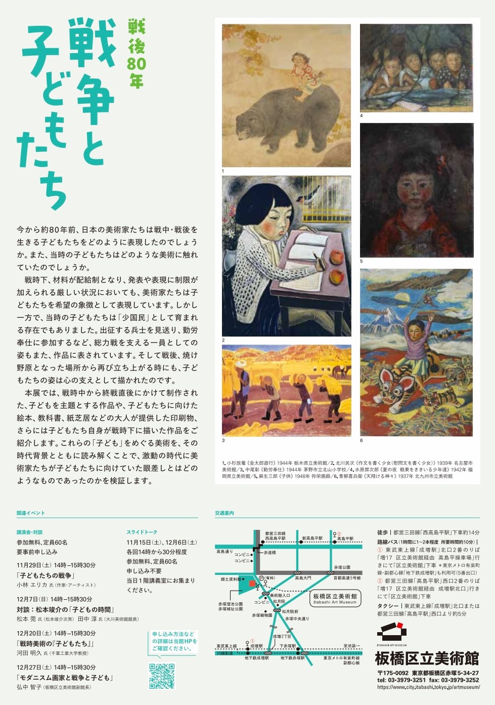 本企画展は、二松学舎大学文学部歴史文化学科 林英一ゼミナールのご協力のもと、描き残した人のどんな思いが読み取れるのかなどを次世代を担う若者の視点で考え、選んだ絵画も展示します。絵画は単なる「過去の記録」ではなく、いまを生きる私たちへ、戦争や平和とは何かを問いかけているようです。絵という表現を通して、戦地に赴いた一人ひとりの人間に寄り添います。
