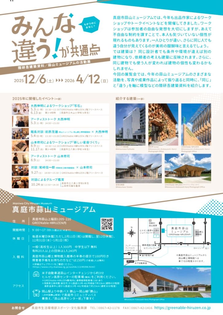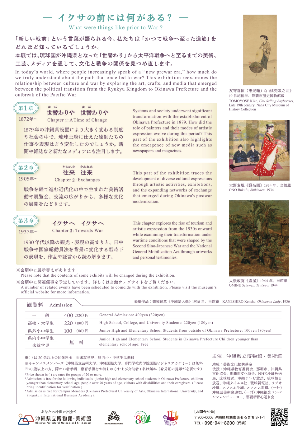 観 覧 料 一 般 600円、 高校・大学生 300円 、中学生以下無料